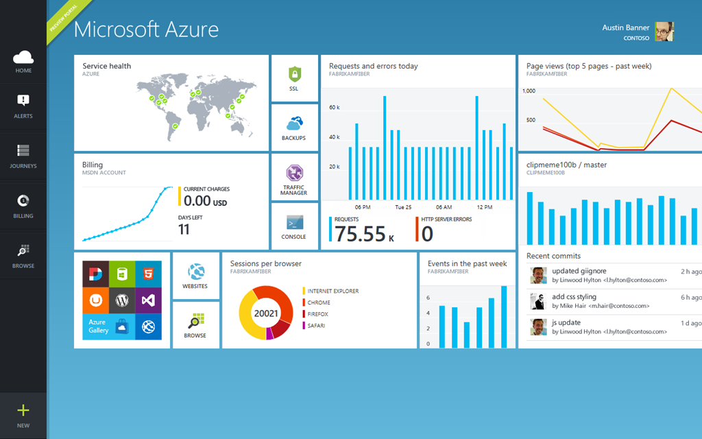 Executive VP Scott Guthrie introduced a new portal for Microsoft Azure, the cloud platform. This is not just a new look, but integrates with Visual Studio online so you can easily view and edit the code and track team projects. There are also new monitoring and analytics features so you can check page views, page load time, browser usage and more. Guthrie also announced integration with Puppet and Chef for deployment automation.