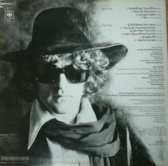 It all happened quickly. In November 1974 Ian Hunter had a breakdown in the USA, shortly before a UK tour was due to start. By the end of December Mott the Hoople had broken up. On 13th January 1975, Hunter and Mick Ronson started recording a solo album at AIR no 2 studio in London’s Oxford St – studio time which according to Mott’s biographer Campbell Devine was originally booked for Mott the Hoople. “I was writing as I recorded,” said Hunter.